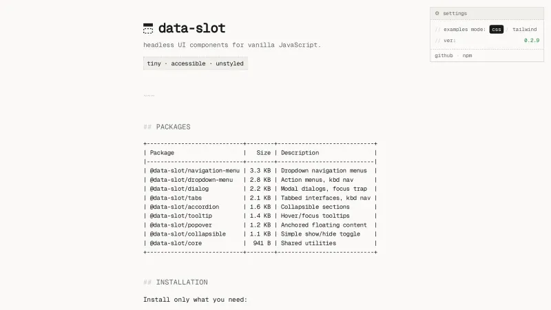 data-slot - headless UI for vanilla JavaScript