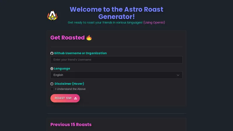 Astro Roaster π₯ Get Roasted