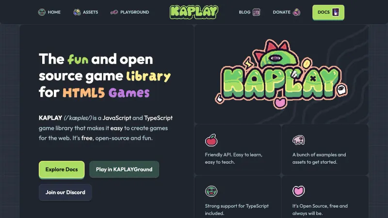 KAPLAY.js, HTML5 Game library for JavaScript and TypeScript. Free & Open Source.